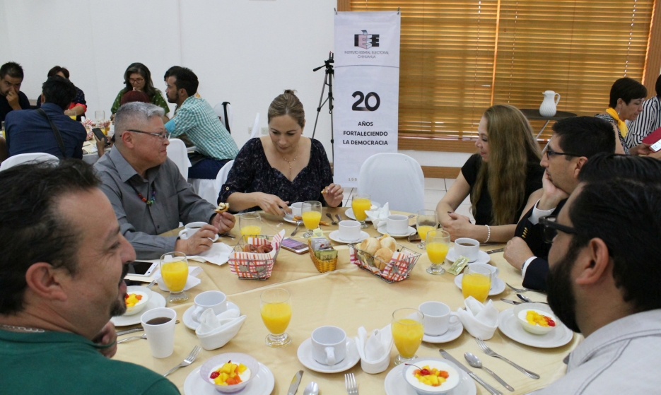 En el desayuno informativo para conmemorar el 62 aniversario del voto femenino en México estuvieron presentes el Consejero Presidente del IEE, Arturo Meraz González; consejeras y consejeros electorales: Saúl Eduardo Rodríguez Camacho, Gilberto Sánchez Esparza, Claudia Arlett Espino, Alonso Bassanetti Villalobos, María Elena Cárdenas Méndez y Julieta Fuentes Chávez, conmemoraron el 62 Aniversario del voto femenino en México.